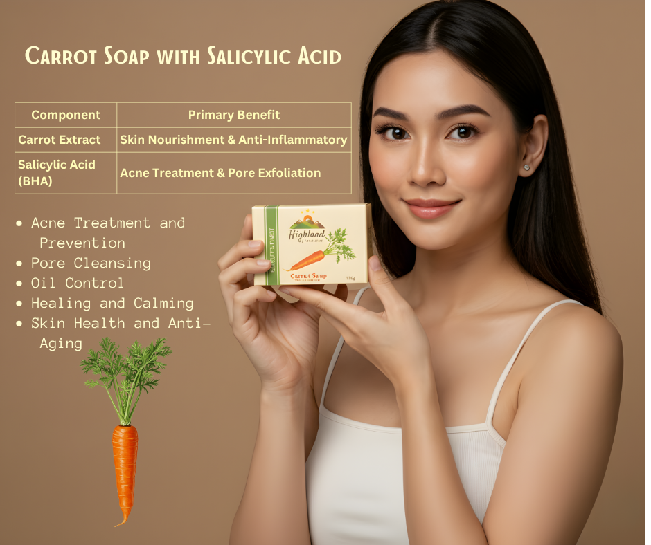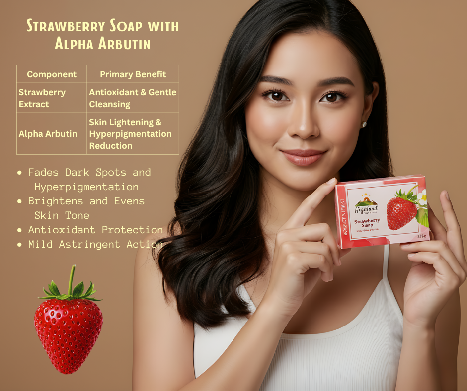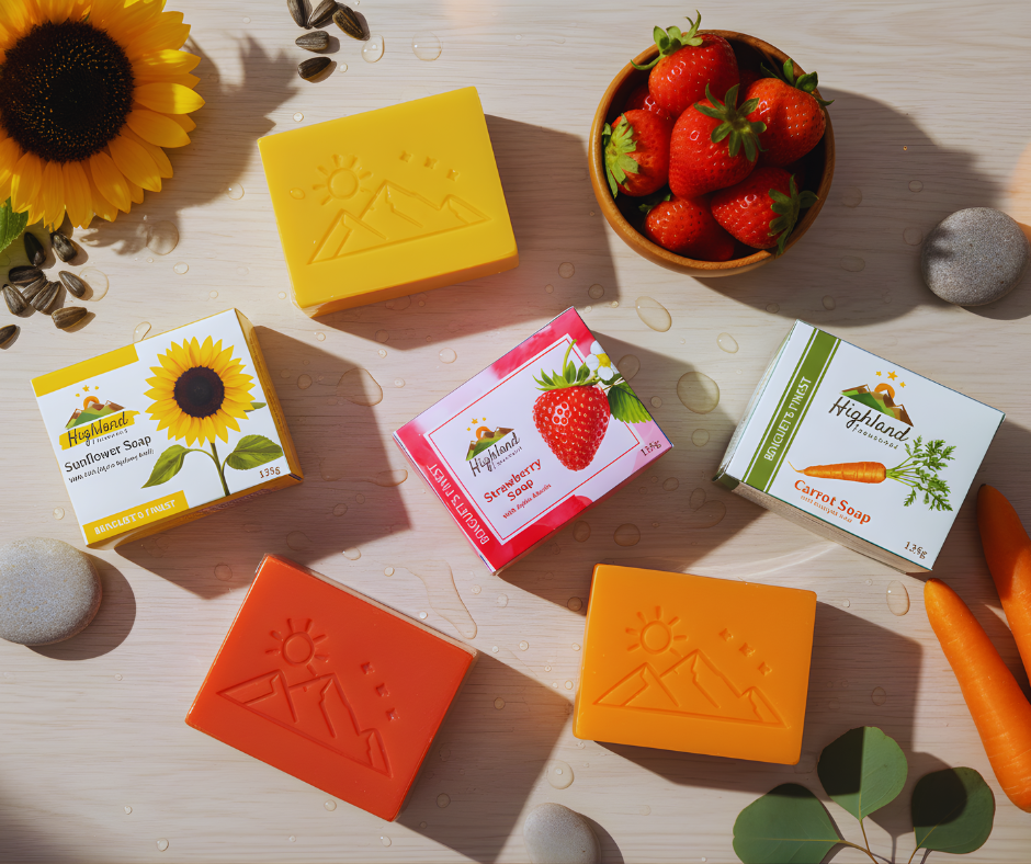 Discover the luxurious benefits of Highland Treasures Artisan Soap. Our package includes three specialized soaps; Strawberry with Alpha Arbutin for brightening, Sunflower with AHA for gentle exfoliation, and Carrot with Salicylic Acid for acne control. Pamper your skin with natural ingredients for a radiant, healthy glow.